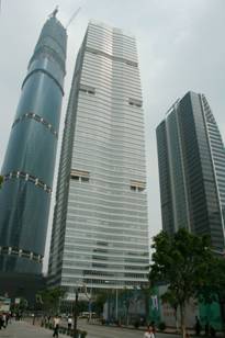 富力中心塔楼高250米,塔楼下部40米×40米,从中部向内收缩,至55层收缩2.5米,55层至58层(250米)楼顶共三层,收缩到楼面面积为20米×20米。结构施工使用一台250吨米大型内爬塔吊位于楼顶的东北角边,由于结构施工需要,施工过程吊装一些大型建筑设备,塔吊需在结构施工封顶后才能在250米塔楼顶拆卸。