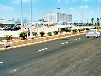 广州本田第二工厂试车场建造工程位于增城市沙埔镇荔新公路段。试车跑道路线总长为1851米,解析停车场面积为6124平方米。主要路面为:主跑道、弯道(含高速路、巡航路、低u路、一般坏路、比利时石头路、扭曲路、鱼鳞路、凸块路、蛇行路、渐变路、单边扭曲路、扭力下降路、听音墙、字回旋场、法定登坡路、涉水路、绳索路、块状路、底盘检查台架、避险砂场、临时解析停车场等)。高速路为高速公路单向双车道,蛇行路为二级公路单向一车道,其余为四级公路单向一车道。试车场是模仿可能出现的各种路况的跑道,如同公路上会出现到的上坡、上坡弯道、坡减速带、井盖、各种沟、坑、鼓包等。各种不同类型的道路可以对轿车进行高速环道、强化试验、耐久试验等全面的专业测试。为此采用新技术,先后使用了桥式摊铺机进行曲面道路铺设;采用黑色路面(沥青砼路面)铺设无接缝的高速环道,使高速环道的噪音符合目前的环保要求;采用了柔性结构路面的建设实施方案,在对抗不均匀沉降;在道路建设中大量采用工程泡沫塑料等进口优质建材以减轻土体重量,减少沉降量;采用软土路基“加筋”方法提高土方路基的抗拉韧性。在曲线路面段施工中针对曲面碎石层呈盆腔状、且每一层设计只有36厘米厚的情况,采用内侧挖台阶、外侧超宽填筑,然后刷坡形成盆腔曲面、使用自制边坡震动压实机压实的方法压实效果和成型效果。地基处理采用二次堆载,砂井竖向排水,钢筋混凝土方桩加固的沉降控制复合桩基以解决横断面上不均匀沉降难题。采用曲面桥式摊铺机在0°~49°斜度的曲面上摊铺施工。采用了三台不同曲率的曲面压路机橫断面一次碾压成型的新技术。使用“复制阴模,反面预制,吊装改面”方案,先后自行设计了旋转吊环,以及特殊组合钢模,采用了932混凝土脱模剂,预制特殊道路预制块。