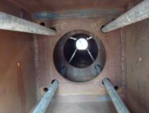 高层建筑钢管混凝土柱梁柱节点范围通常设置多层内节点板,为确保节点板范围混凝土密实,本工法创新性地在节点板上合理地设置混凝土施工排浆排气孔,控制节点板处混凝土浇注高度,充分振捣,利用排浆排气孔排除节点板下空气、混凝土气泡和混凝土悬浮在节点板下多余浆体,确保节点板范围混凝土施工质量。