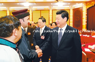 习近平在讲话中指出,我国是统一的多民族国家,民族工作关乎大局。坚持中国特色社会主义道路,是新形势下做好民族工作必须牢牢把握的正确政治方向。要全面贯彻落实党的民族政策,坚持和完善民族区域自治制度,不断增强各族人民对伟大祖国的认同、对中华民族的认同、对中华文化的认同、对中国特色社会主义道路的认同,更好维护民族团结、社会稳定、国家统一。要积极创造条件,千方百计加快少数民族和民族地区经济社会发展,让民族地区群众不断得到实实在在的实惠。团结稳定是福,分裂动乱是祸。[详细]