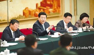 (3月4日下午,习近平看望参加全国政协十二届四次会议的民建、工商联委员并参加联组会。)